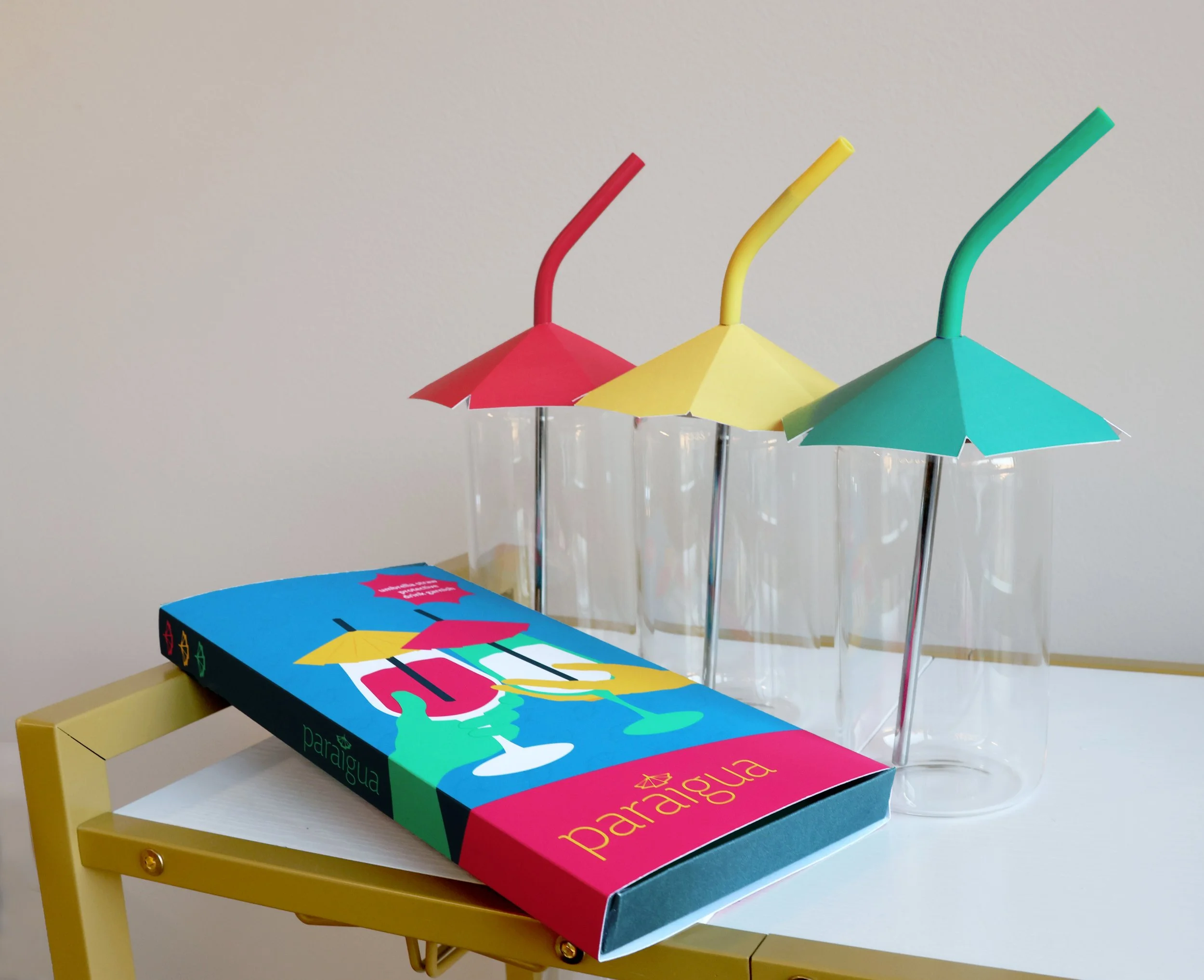 Paraigua is a brand imagined to protect your drinks from the elements. It allows users to have a decorative garnish in their beverage, while also making sure that nothing additional can fall in. The packaging is bright and colorful to inspire fun and comfort throughout the brand.